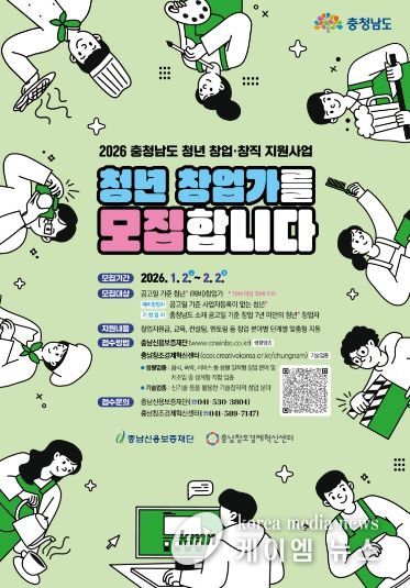 (케이엠뉴스) 충남도는 창업을 계획하고 있는 청년들을 위해 창업 전반에 도움을 주는 ‘2026년 충남 청년 창업·창직 지원사업’ 참여자를 모집한다.