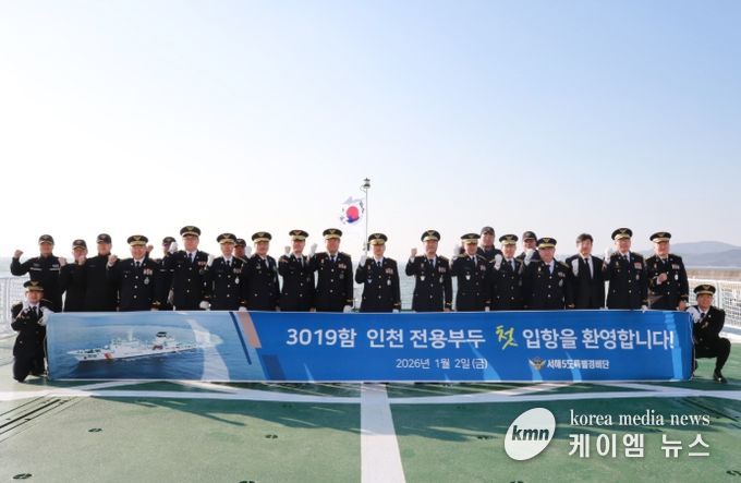(케이엠뉴스) 중부지방해양경찰청 서해5도특별경비단은 2일 최신형 3,000톤급 경비함정인 3019함이 불법 외국어선 단속 업무를 위해 인천 해양경찰 전용부두에 첫 입항했다고 밝혔다.