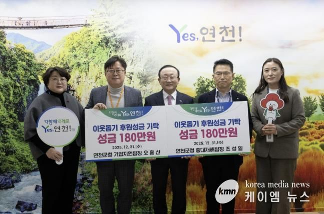 (케이엠뉴스) 연천군은 조성일 중대재해팀장과 오흥산 기업지원팀장이 지난달 31일 복지사각지대 취약계층 지원을 위한 180만원의 후원성금을 기탁해 지역사회에 훈훈한 감동을 전하고 있다고 밝혔다.