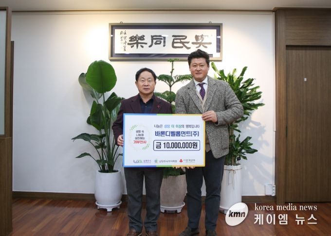(케이엠뉴스) 남양주시는 5일 바른디벨롭먼트 주식회사가 지역 내 취약계층 지원을 위해 후원금 1천만 원을 남양주시복지재단에 기탁했다고 밝혔다.