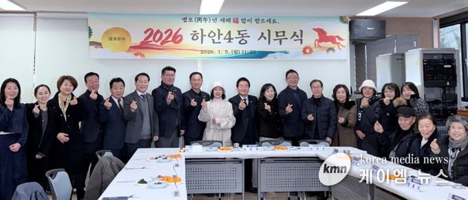 (케이엠뉴스) 광명시 하안4동 행정복지센터는 지난 5일 센터 2층 회의실에서 2026년 병오년(丙午年) 새해를 맞아 유관단체장과 마을연대활동가 등 30여 명이 참석한 가운데 시무식을 열었다.