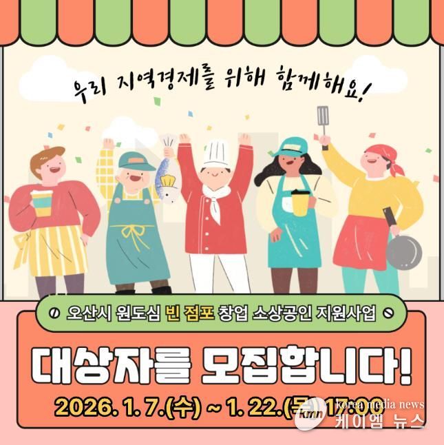 (케이엠뉴스) 오산시는 오산역 앞 아름다로(구 문화의 거리) 일대 원도심 빈 점포를 활용한 창업 소상공인을 대상으로 임차료를 지원하는 ‘원도심 빈 점포 창업 지원’ 사업의 대상자를 이달 22일까지 모집한다고 밝혔다.