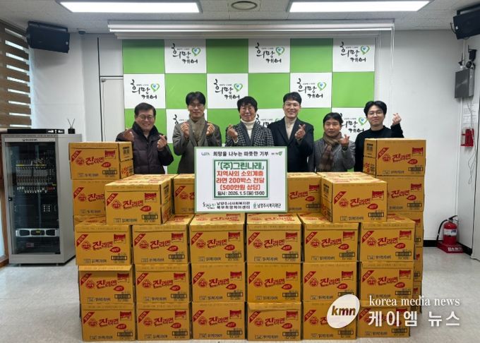 (케이엠뉴스) 남양주시는 지난 5일 ㈜그린나래가 지역 내 취약계층의 식생활 지원을 위해 라면 200박스(약 500만 원 상당)를 북부희망케어센터에 전달했다고 7일 밝혔다.