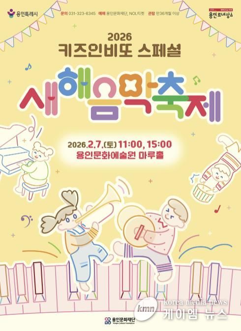 (케이엠뉴스) 용인문화재단은 오는 2월 7일 용인문화예술원 마루홀에서 ’2026 키즈인비또‘ 스페셜 공연 '새해 음악 축제'를 개최한다. 유‧아동을 위한 융‧복합 클래식 공연 키즈인비또는 올해로 15년째 이어지고 있는 용인문화재단의 특화 가족 공연 콘텐츠이다.