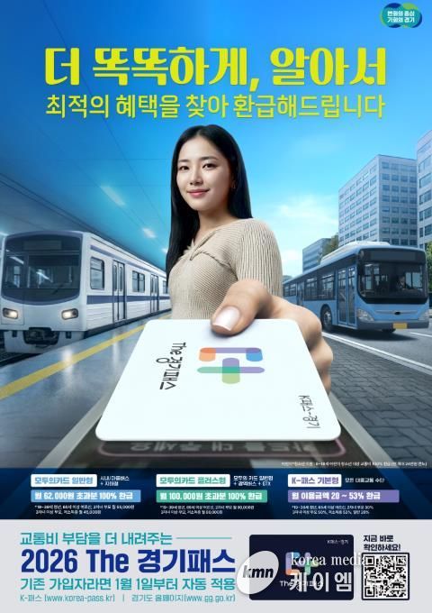 (케이엠뉴스) 새해부터 전국 모든 대중교통수단의 교통비 일부를 환급하는 ‘The 경기패스’에 월 무제한 정액권 기능인 ‘모두의 카드’가 추가된다.