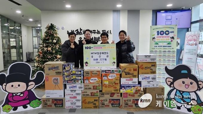 (케이엠뉴스) 의정부시 송산3동행정복지센터는 1월 7일 MTM영웅태권도 송산관이 ‘100일간 사랑릴레이 배턴 잇기’에 동참해 라면 777개를 기부했다고 밝혔다.