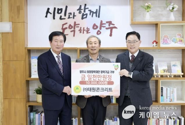 양주시 관계자는 “지역 발전과 인재 육성을 위해 관심과 나눔을 실천해 주신 태원콘크리트에 감사드린다”며 “이번 기부를 계기로 지역사회 내 따뜻한 나눔 문화가 더욱 확산되기를 바란다”고 말했다.