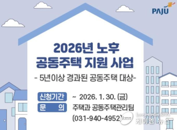 신청 기한은 오는 30일까지이며, 파주시청 주택과를 방문해 신청하거나 등기우편으로 신청서를 제출하면 된다. 선정된 단지는 현장 조사와 심의를 거쳐 2026년 11월까지 사업을 추진하게 된다.