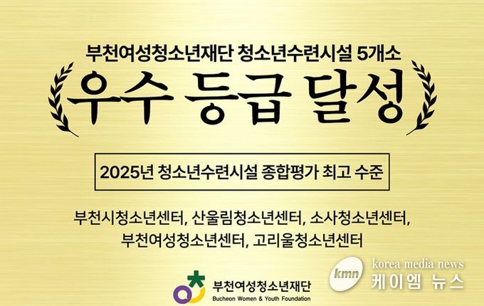 (케이엠뉴스) 부천여성청소년재단이 청소년수련시설 5개소(부천시청소년센터, 산울림청소년센터, 소사청소년센터, 부천여성청소년센터, 고리울청소년센터)가 성평등가족부 주관 2025년 청소년수련시설 종합평가에서 5개 시설 모두 최고 수준인 ‘우수’ 등급을 달성하는 쾌거를 이루었다.