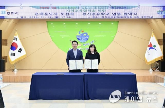 (케이엠뉴스) 포천시와 포천교육지원청은 지난 12일 포천교육지원청 대회의실에서 ‘지역교육협력을 위한 온배움도시 포천시–경기공유학교 업무협약’을 체결했다.