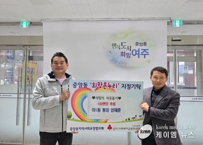 (케이엠뉴스) 안재훈 하1통장은 새해를 맞아 지난 12일 중앙동행정복지센터에 성금 100만원을 기탁하며 변함없는 이웃사랑을 실천했다.