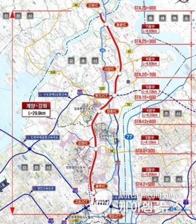 (케이엠뉴스) 김포시는 국토교통부와 한국도로공사가 추진 중인 계양~강화 고속도로 건설사업이 현재 실시설계 완료, 사업 본격화 예정이라고 밝혔다. 시는 김포시민의 교통편익 극대화를 목표로 관계기관과 협의에 끝까지 적극 나서며 고속도로 건설로 인한 도시 단절과 생활환경 저해를 최소화하는 한편 도시연결성 확보에 총력을 다한다는 방침이다.
