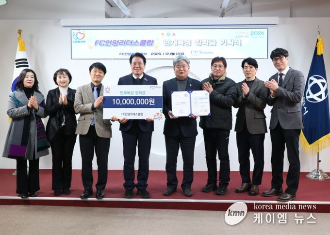 (케이엠뉴스) 안양시 인재육성재단은 지난 12일 안양시 기반의 시민 참여형 후원 조직인 ‘FC안양리더스클럽(회장 김인환)’으로부터 미래 인재 양성 장학금 1,000만 원을 전달받았다고 13일 밝혔다.