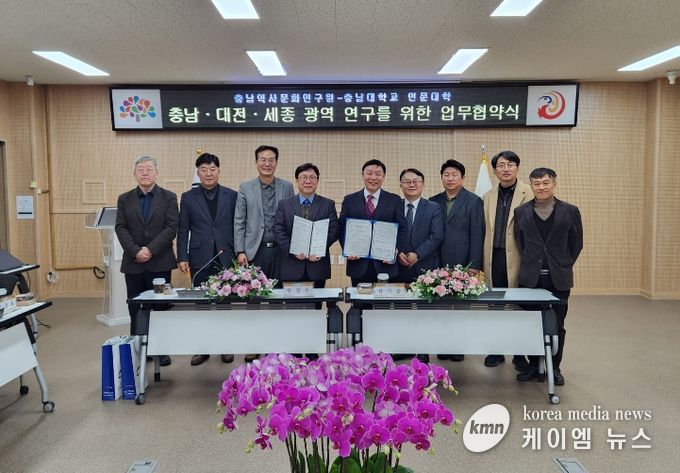 (케이엠뉴스) 충남역사문화연구원(원장 장기승)은 지난 1월 13일 충남대학교 인문대학(학장 정양수)과 ‘충남·대전·세종 초광역 인문사회 연구 강화를 위한 업무협약’을 체결했다.