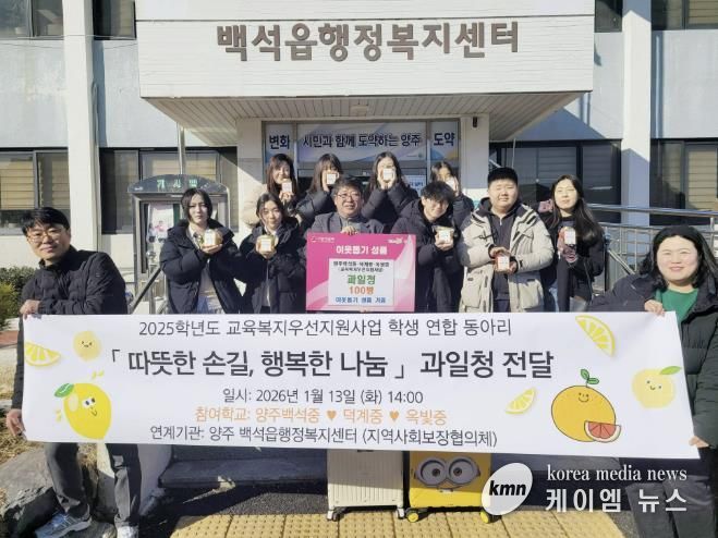 (케이엠뉴스) 양주시 백석중학교, 덕계중학교, 옥빛중학교가 함께하는 교육복지우선지원사업 학생 연합 동아리가 지역사회를 위한 따뜻한 나눔을 실천했다.