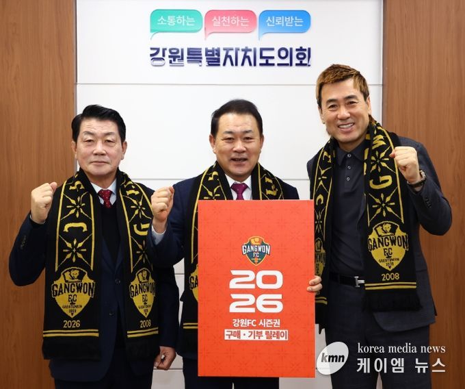 (케이엠뉴스) 강원특별자치도의회는 2026년 강원FC의 선전과 도내 축구 열기 확산을 위해 ‘시즌권 구매-기부 릴레이’에 동참한다.