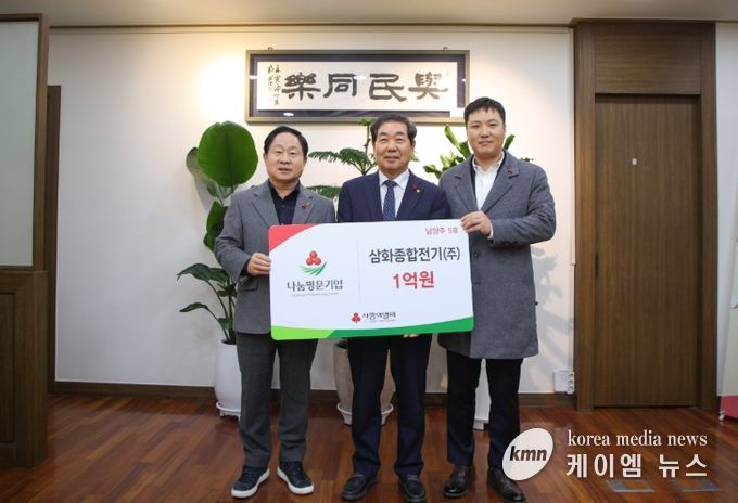 (케이엠뉴스) 남양주시는 14일 삼화종합전기가 사회복지공동모금회의 고액 기부 프로그램인 ‘나눔명문기업’ 5호로 가입하고, 지역 내 취약계층 지원을 위해 1억 원 기부를 약정했다고 밝혔다.