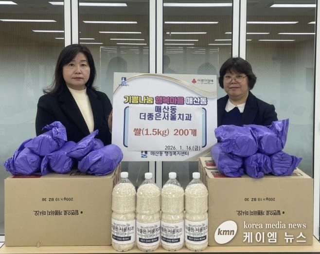 (케이엠뉴스) 수원시 팔달구 매산동은 지난 16일, 매산동 관내에 소재한 더좋은서울치과에서 지역 내 어려운 이웃을 돕기 위해 페트병 쌀 200개를 매산동 지역사회보장협의체에 후원했다고 밝혔다.