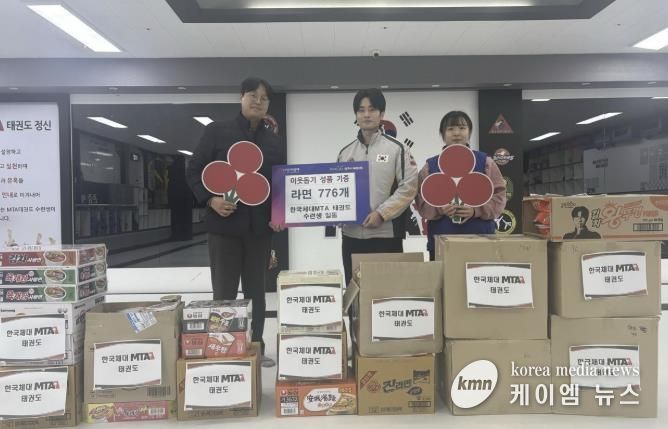(케이엠뉴스) 한국체대MTA태권도가 지난 15일 지역 내 어려운 이웃을 돕기 위해 라면 776개를 옥정2동 행정복지센터에 기탁했다.