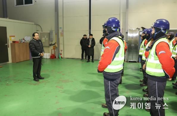 이권재 시장은 이른 아침 대행업체를 찾아 환경미화원들과 간담회를 갖고, 혹한기 작업에 따른 안전사고 예방과 건강관리의 중요성을 강조하며 현장 근무자들의 노고에 감사의 뜻을 전했다.