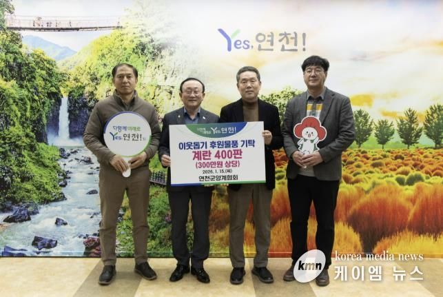 (케이엠뉴스) 연천군양계협회는 지난 15일 연천군청을 방문해 지역 내 취약가정을 지원하기 위해 계란 400판(300만원 상당)을 연천군가족센터에 후원물품으로 지정 기탁했다.