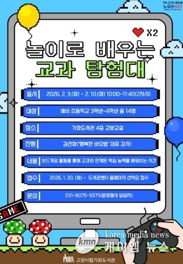 (케이엠뉴스) 고양특례시 가좌도서관은 2월 3일부터 방학특강 프로그램 ‘놀이로 배우는 교과 탐험대’을 운영한다.