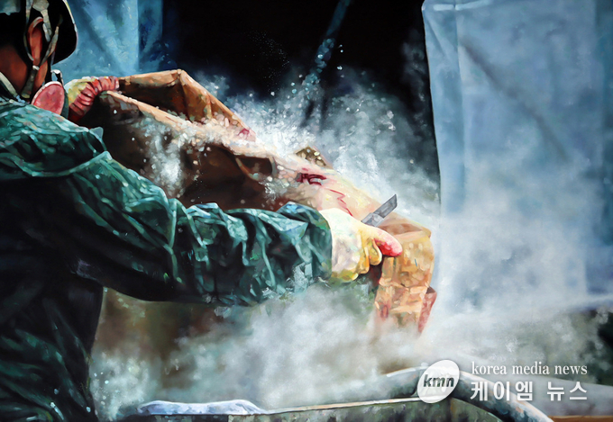 아무도 주목하지 않는 작업장은 한 가정 삶의 원동력이 되는 소중한 곳으로 만들고, 돋보이지 않지만 책임감으로 땀을 흘리며 일에 열중하는 노동자의 몸짓은 작가의 붓 끝으로 채색되어 예술로 승화시켰다.