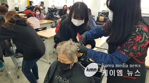 어르신들이 원하는 색의 염색과 커트로 수준 높은 이·미용 서비스를 제공해 어르신들의 큰 호응을 얻었다.