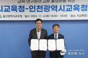 (케이엠뉴스) 인천광역시교육청은 울산광역시교육청과 4일 울산시교육청에서 ‘읽걷쓰 문화 확산을 위한 상호 협약’을 체결하고, 양 기관의 교류와 협력을 강화하기로 했다. 이번 협약은 인천시교육청의 읽걷쓰 교육 철학에 공감대를 형성하고, 교육·연구 분야 교류 및 지역 특성에 맞는 교육 모델 공동 개발을 추진하기 위해 마련됐다. 양 교육청은 ▲교육·연구 교류 활성화 ▲읽걷쓰·책크인·민주시민교육 등 프로그램 연계 ▲지역 문제 해결 및 사회공헌 프로그램 공동 운영 등을 추진하기로 합의했다. 또한 한국교원대학교에서 개발 중인 읽걷쓰 전국 단위 교원 연수비용 할인을 울산광역시교육청에도 적용하기로 했다. 협약식 후 도성훈 교육감은 ‘읽걷쓰와 함께하는 인천 평화교육’주제 강연에서 인간과 자연, 인공지능이 공존하는 시대에 나다움과 인간다움을 갖춘 애기애타 정신의 중요성과 인천교육청의 평화·민주시민교육 사례를 공유했다. 울산교육청 관계자는 “인천교육청의 읽걷쓰 철학에 깊이 공감한다”며 “양 기관의 협력으로 학생들의 삶과 학습을 연결하는 교육 혁신을 추진하겠다”고 전했다. 도성훈 교육감은 “이번