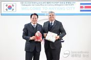 (케이엠뉴스) 안양시는 최대호 시장이 지난 17일 오전 11시40분 안양시청 3층 접견실에서 호르헤 엔리케 발레리오 에르난데스 주한코스타리카 대사와 코스타리카 커피 산업을 총괄하는 공식 연구·관리 기관인 코스타리카 커피연구소(ICAFE) 대표단을 접견하고, 양국 지방정부 간 실질적 교류 확대 방안을 논의했다고 18일 밝혔다. 이번 접견은 지난 7월 말 최대호 안양시장이 전국사회연대경제지방정부협의회 소속 지자체장들과 함께 코스타리카를 방문해 스테판 브루너 제1부통령, 호르헤 발레리오 주한코스타리카 대사 등 정부 관계자와 만나 지속가능한 지역발전과 상생 경제 실현을 위한 정책을 논의한 데 따른 후속 교류 일정이다. 이날 최대호 시장은 환영 인사에서 “한국과 코스타리카의 수교 63주년이자 코스타리카 독립 204주년을 맞는 뜻깊은 해에 이렇게 다시 만나게 되어 더욱 의미가 깊다”며 “지리적으로 멀리 떨어져 있지만 상호 존중과 신뢰를 바탕으로 동반자적 협력을 이어가자”고 강조했다. 이에 주한코스타리카 대사는 안양시의 따뜻한 환대에 감사를 표하며 “코스타리카와 한국 양국 관계가 더욱 공고해지는 만큼, 안양시와도 커피, 스