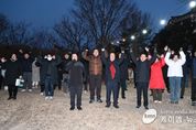 (케이엠뉴스) 이상일 용인특례시장은 1월 1일 새해를 맞아 일출(日出)로 유명한 석성산에 올라 시민 2000여 명과 함께 해맞이를 하고 덕담을 주고 받았다. 용인시체육회와 용인시산악연맹이 주최·주관한 이날 행사에는 이상일 시장이 시민들과 함께 새해 첫 일출을 바라보며 시의 발전과 시민의 안녕을 기원했다. 이 시장은 오전 7시부터 8시 30분까지 석성산에서 시민들과 새해 인사를 하고 덕담을 나눴으며, 시민의 기념사진 촬영 요청에 일일이 응하며 소통하는 시간을 가졌다. 체육회와 산악연맹은 산 중턱과 정상에서 시민들을 위해 떡국과 커피, 차 등을 제공했고 시민들은 감사의 뜻을 나타냈다. 이 시장은 정상에서 시민들에게 “새해 첫날 떠오르는 해의 힘찬 기운과 붉은 말의 역동적 기운과 석성산의 기상을 받아 시민 모두가 힘찬 출발을 하시길 바란다. 새해 복 많이 받으시고 소망도 다 성취하시기를 바란다"고 인사했다. 이 시장은 "시는 올해에도 시장과 공직자들이 힘과 지혜를 모아 시를 발전시키고 시민 생활에 보탬이 되는 일들을 계속 열심히 해나가겠다"고 했다. 석성산에서는 해마다 신년 해맞
