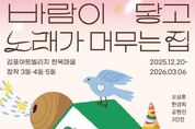 (케이엠뉴스) (재)김포문화재단은 연말연시를 맞아 가족의 온기와 새해의 희망을 담은 하반기 기획전시 '바람이 닿고 노래가 머무는 집'을 12월 20일부터 2026년 3월 6일까지 김포아트빌리지 한옥마을 창작 3·4·5동에서 개최한다고 밝혔다. 이번 전시는 ‘집’이라는 상징을 통해 한 해를 성찰하고 다가올 새해의 행복을 기원하는 시민참여형 전시로, 공현진·오상훈·한경희 작가가 조각, 패브릭, 미디어, 설치 작업을 선보인다. 이번 전시에서 세 명의 작가는 동시대 예술의 언어로 새로운 한해, 새로운 여정을 준비하는 이들에게 서로 다른 방식의 머무름을 건넨다. 공현진 작가는 한국의 무속과 민간신앙을 바탕으로 새해를 맞이하는 마음을 조각에 담아 전통과 현재를 이어내는 새로운 기원의 자리를 마련한다. 오상훈 작가(문화지형연구소 씨티알)는 각자가 지닌 걱정을 털어놓고 서로 교환하며 위로를 얻는 참여형 작업 '걱정교환소'를 소개한다. 한경희 작가는 실과 천 조각들을 이어붙여 겹치고 얽힌 천의 질감 속에서 자연의 풍경을 떠올리며 놀이처럼 즐기는 감각적 체험을 제공한다. 한편, 이번 전시에는 전시 감상을 넘어 시민이 직접 참여하