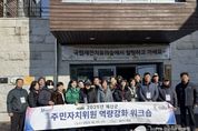 (케이엠뉴스) 예산군은 주민자치위원의 자치역량 강화와 2025년 자치사업 발굴을 위해 충청북도 제천 일원에서 워크숍을 운영했다고 5일 밝혔다. 이번 워크숍은 군 담당자와 12개 읍면 주민자치 임원 등 33명이 참여했으며, 주민자치 현장에서 활용 가능한 사례 중심의 탐방·체험 프로그램으로 구성됐다. 참가자들은 제천 치유의 숲에서 사상체질을 활용한 한방차 테라피와 아로마 테라피 체험을 진행했으며, 청풍호 유람선을 통해 지역 자연과 문화자원을 둘러봤다. 이어 참가자들은 제천 하소생활문화센터를 방문해 폐건물을 주민 의견을 반영해 생활문화공간으로 재생한 조성 과정과 공동체 프로그램 운영 사례를 살펴봤으며, 주민이 기획과 운영에 직접 참여하는 주민참여형 생활문화 SOC 모델을 견학하면서 지역에서 실현 가능한 민관협치 우수사례와 지속 가능한 공간 운영 방식을 확인했다. 특히 이번 워크숍은 지역사회 발전과 주민 화합에 기여해 온 위원들의 노고를 격려하고 주민자치 활동의 지속성과 참여 의지를 높이는 계기가 됐다. 관계자는 “이번 워크숍은 단순 견학이 아닌 체험 중심 프로그램으로 자치사업 발굴 능력과 현