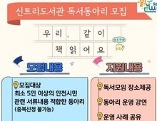 (케이엠뉴스) 인천광역시교육청신트리도서관은 시민 주도의 자율적인 독서 활동을 지원하고 생활 속 독서문화를 확산하기 위해 '2026년 자율독서동아리 지원사업'의 동아리를 모집한다. 지원사업은 인천 지역의 자발적 독서동아리를 대상으로 연중 운영되며, 인천 시민 또는 지역 내 직장인 등 5인 이상으로 구성된 독서동아리 중 30개 내외를 선정한다. 선정된 동아리에는 도서관 내 동아리실과 강의실 등 모임 공간이 제공되며 6만원 이내의 활동 도서를 지원한다. 자율독서동아리 모집은 8일부터 15일까지며, 참여 희망 동아리는 신청서를 작성해 이메일로 제출하면 된다. 자세한 사항은 신트리도서관 누리집 공지사항을 확인하거나 독서문화과로 문의하면 된다.