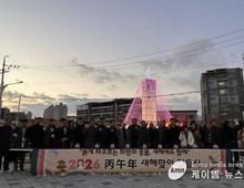 (케이엠뉴스) 가평군 가평읍은 지난 9일 가평읍파출소 앞 회전교차로에서 ‘2026년 가평읍 새해맞이 홍보탑 점등식’을 개최했다. 이날 행사에는 가평읍장을 비롯해 군의원, 가평읍 6개 단체장, 32개리 이장 등 40여 명이 참석해 새해를 밝히는 점등식에 함께했다. 이번 점등식은 2026년 새해를 새로운 희망과 기대를 품고 나아가길 기원하는 의미로 진행됐다. 참석자들은 홍보탑 점등과 함께 힘찬 새출발을 다짐하는 시간을 가졌다. 장석조 가평읍장은 “주민 모두가 희망찬 새해를 맞이하길 바라는 마음으로 행사를 준비했다”며 “2026년 새해에도 지역 발전과 주민 화합을 위해 최선을 다하겠다”고 밝혔다.