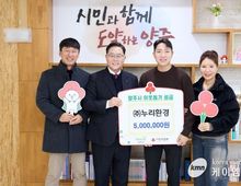 (케이엠뉴스) 양주시가 지난 12일 ㈜누리환경(대표 이재민)으로부터 이웃돕기 성금 500만 원을 기탁받았다. ㈜누리환경은 지난해에 이어 올해도 같은 금액을 기탁하며 지속적인 나눔을 실천하고 있다. 이날 기탁식에는 이재민 대표와 이성원 이사 및 관계자가 참석해 따뜻한 마음을 전했다. 이재민 대표는 “기업이 지역에서 성장한 만큼 지역사회에 도움이 되고 싶다는 마음으로 올해도 기부를 이어가게 됐다”며 “작지만 의미 있는 나눔이 어려운 이웃들에게 실질적인 도움이 되길 바란다”고 말했다. 양주시 관계자는 “지역기업이 꾸준한 관심과 나눔으로 이웃사랑을 실천해 주셔서 진심으로 감사드린다”며 “기탁해 주신 성금은 도움이 필요한 가정에 소중히 전달하겠다”고 말했다. 기탁된 성금은 경기 사회복지공동모금회를 통해 양주시 취약계층을 지원하는 데 사용할 예정이다.