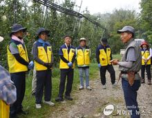 (케이엠뉴스) 파주도시관광공사는 지난 26일, 파주시 관내 사과 과수원을 찾아 수확기 일손 부족으로 어려움을 겪는 농가를 위해 봉사활동을 실시했다. 이번 활동은 파주시자원봉사센터의 ‘천하무적 직장인 봉사단’ 사업 일환으로, 지난 민북 지역 농촌마을 환경정화 활동에 이어 두 번째 농촌 지원 활동을 진행했다. 이날 공사 직원 10여명이 과수원에 방문해, 사과가 원활히 익을 수 있도록 사과나무 가지와 잎을 정리하는 등 농가의 일손 부족 문제를 해소하는 데 직접적인 도움을 제공했다. 이날 참여한 직원은 “짧은 시간이었지만 농민분들의 걱정을 조금이나마 덜어드릴 수 있어 보람된 시간이었다”라고 소감을 밝혔다.