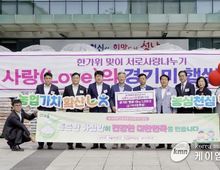 (케이엠뉴스) NH농협 성남시지부는 어려운 이웃에게 전달해 달라며 1억9000만원 상당의 쌀 5000포대(포대당 10㎏)를 9월 29일 성남시에 맡겼다. 시는 이날 오전 11시 시청광장에서 신상진 성남시장과 양흥식 농협 성남시지부장, 김효진 경기 사회복지공동모금회 사무처장 등이 참석한 가운데 ‘2025년 한가위 맞이 서로 사랑 나누기 쌀 전달식’을 했다. 받은 쌀은 성남지역 50개 동 기초생활보장 수급자와 저소득층에 1포씩 전달하기로 했다. NH농협 성남시지부는 2012년부터 추석 명절 때마다 저소득층을 위한 쌀을 성남시에 기탁해 오고 있다. 2023년부턴 쌀, 김치, 성금 등 다양한 형태로 나눔을 실천해 지역 사회에 온기를 전하고 있다.