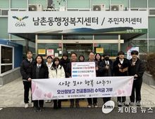 (케이엠뉴스) 오산시 남촌동행정복지센터는 지난 16일 오산정보고등학교 전공동아리 학생들과 주훈지 교장, 담당교사 등이 참석한 가운데 관내 저소득층 지원을 위한 바자회 판매 수익금 70만 원을 기탁받았다고 밝혔다. 이번 성금은 전공동아리 학생들이 직접 제작한 작품을 판매하는 바자회를 통해 마련된 것으로, 학생들은 기획과 준비 단계부터 제작, 판매에 이르기까지 전 과정에 적극 참여하며 나눔의 가치를 실천했다. 오산정보고등학교 전공동아리는 2016년부터 매년 바자회를 개최해 판매 수익금을 지역사회에 꾸준히 기부해 왔으며, 이번 기탁은 코로나19로 중단됐던 나눔 활동을 재개한 이후 처음으로 이뤄진 기부라는 점에서 의미를 더했다. 기탁식에 참석한 학생 대표는 “우리가 만든 작품이 지역사회를 위해 사용된다고 생각하니 매우 보람을 느낀다”며 “앞으로도 작은 나눔이라도 지속적으로 실천하며 지역에 도움이 되는 활동을 이어가고 싶다”고 말했다. 정찬웅 남촌동장은 “학생들이 정성껏 준비한 바자회 수익금을 이웃을 위해 기탁해 준 데 깊이 감사드린다”며 “전달받은 성금은 관내 취약계층 등 도움이 필요한 이웃을 위해 소중히