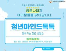 (케이엠뉴스) 고양시정신건강복지센터에서는 청년들의 정신건강 접근성을 높이기 위해 찾아가는 정신건강 상담서비스 ‘청년마인드톡톡’을 1월부터 12월까지 연중 운영한다. ‘청년마인드톡톡’은 고양시에 거주하는 만 19세~34세 청년을 대상으로 고양시 청년공간(한국장학재단 대학생연합생활관(원흥동), 28청춘창업소(화정동))에 찾아가 상담서비스를 제공한다. 상담 이용에 대한 심리적·환경적 장벽을 낮추고, 청년들이 일상생활 공간에서 보다 편안하게 정신건강 상담을 받을 수 있도록 학업, 취업, 대인관계, 정서적 어려움 등 다양한 고민을 겪는 청년을 대상으로 정신건강복지센터 직원이 직접 찾아가 1:1 상담을 실시한다. 특히, 내일꿈제작소 누리집 내 ‘청스타’를 통해 사전 예약하면, 본인이 원하는 시간대에 내일꿈제작소에서 정신건강전문요원과 함께 마음건강검진과 상담을 받을 수 있다. 고양시정신건강복지센터 관계자는 “청년마인드톡톡은 청년들이 정신건강 문제를 혼자 고민하지 않고, 보다 가까운 공간에서 전문적인 도움을 받을 수 있도록 마련된 찾아가는 상담 서비스”라며, “앞으로도 지역 내 청년거점 공간과의 협력을 통해 청년