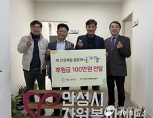 (케이엠뉴스) 지난 8일, 안성시자원봉사센터는 연말을 맞아 재 안성북일 동문회로부터 온기나눔 후원금 100만 원을 전달받았다. 이날 안성시자원봉사센터에서 진행된 후원금 전달식은 동문회가 지역사회에 따뜻한 연말 온정을 나누고 복지 사각지대에 놓인 이웃들을 돕기 위해 마련됐으며, 동문들은 십시일반 후원금을 모아 따뜻한 마음을 전했다. 전달된 후원금은 동문회의 뜻에 따라 식료품을 구입하여 관내 복지 소외계층에게 전달될 예정이다. 김동성 센터장은 ‘연말 따뜻한 나눔을 실천해 주신 재 안성북일 동문회에 깊이 감사드린다’라며, ‘동문회의 소중한 마음이 이웃들에게 잘 전달되어 따뜻한 겨울을 나는 데 도움이 되도록 하겠다’라고 말했다. 안성북일 윤기현 동문회장(용인 고림중학교장)은 ‘지역사회 동문들의 정성을 모아 이웃을 도울 수 있어 기쁘다’라며, ‘작은 나눔이지만 어려운 이웃들에게 온기를 전하는 불씨가 되기를 바란다’라고 화답했다. 또한 김관섭 고문(미양농협조합장)은 “동문회의 따뜻한 온기가 더 널리 퍼져 안성시 전체가 행복해지기를 응원한다”라고 격려했다. 한편, 안성시자원봉사센터는 지역사회 이웃들