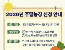 (케이엠뉴스) 안산시는 내달 5일부터 사흘간 주말농장 신청 및 접수를 받는다고 12일 밝혔다. 안산 주말농장은 도심 속에서 농촌의 자연 친화적 생활을 꿈꾸는 시민들을 위해 분양하고 있다. 올해 주말농장은 ▲단원(신안산대학교 부근) ▲초지역(초지역 4번 출구 앞) ▲유원지(화랑유원지 내) ▲상록 농장(한대앞역 인근) 등 4개소에 걸쳐 총 2,604구획 규모로 운영된다. 각 농장은 1구획당 1만 7천 원의 사용료가 부과되며, 관내에 거주하는 세대주 명의로 1가구당 1구획만 신청할 수 있다. 다만, 동일 세대에서 중복 신청할 경우, 추첨에서 제외된다. 신청을 원하는 시민은 안산시 농업기술센터를 방문해 접수하거나 ‘안산시 통합예약시스템 누리집’을 통해 온라인으로 접수할 수 있다. 직접 방문 시 세대주 주민등록등본과 신분증을 지참해야 하며, 온라인 신청 시에는 세대주 인적 사항을 기입하고 주민등록등본을 첨부해야 한다. 대상자 선정 결과는 컴퓨터 추첨 후 문자나 카카오톡으로 통보되며, 사용료를 납부할 수 있는 가상계좌도 함께 발송된다. 납부 기한 내 사용료를 납부하면 주말농장 대상자로 확정된다. 이용 기간은