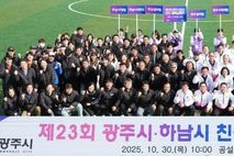 (케이엠뉴스) 광주시체육회는 30일 광주시 공설운동장에서 ‘제23회 광주시·하남시 체육 친선 교류전’을 성황리에 개최했다. 2002년 처음 시작된 이 교류전은 두 도시의 체육회가 매년 번갈아 주최하며 스포츠를 통해 우정과 협력을 다져온 대표적인 화합의 장으로 자리매김하고 있다. 올해 교류전에는 광주시와 하남시의 시의회, 시청, 실버팀 등이 참가해 축구, 피구, 2인 3각 달리기, 줄다리기 등 다양한 종목에서 기량을 겨루며 우정을 나누는 뜻깊은 시간을 가졌다. 이날 행사에는 방세환 광주시장, 이현재 하남시장, 허경행 광주시의회 의장, 금광연 하남시의회 의장, 박범식 광주시체육회장, 최진용 하남시체육회장 등 주요 내빈이 참석해 선수단을 격려하고 양 시의 지속적인 교류를 응원했다. 방 시장은 “체육을 통한 소통과 교류가 양 시의 화합을 더욱 깊게 하는 계기가 되길 바란다”며 “앞으로도 두 도시가 체육을 매개로 지속적인 교류를 이어가며 시민 화합을 강화해 나가기를 기대한다”고 말했다. 이에 대해 이 시장도 “이번 교류전은 시민들이 함께 웃고 어울리며 건강한 공동체 의식을 다지는 뜻깊은 행사였다”며 “앞으로