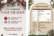 (케이엠뉴스) 구리시 여성행복센터는 12월 1일부터 12월 12일까지 2주간 ‘2025년 수강생 작품 전시 및 발표회’를 개최한다고 밝혔다. 이번 행사는 여성행복센터 행복동 1층에서 진행되며, 한 해 동안 수강생들이 갈고닦은 실력을 선보이는 자리다. 생활 속 문화예술 참여를 확대하고 시민의 문화 향유 기회를 높이는 동시에 여성행복센터 프로그램에 관한 관심을 높이기 위해 마련됐다. 전시장에는 양재 소품, 나만의 옷 만들기, 꽃꽂이, 가죽공예, 서양화, 한국화 등 총 9개 강좌에서 제작한 약 120점의 작품이 전시된다. 또한 플루트, 바이올린, 통기타 음악 강좌 수강생들의 발표 공연도 함께 진행되어 다채로운 즐길 거리를 제공할 예정이다. 백경현 구리시장은 “추워지는 연말, 여성행복센터 수강생들의 작품발표회가 시민들의 마음을 따뜻하게 채우는 시간이 되길 바란다”라고 전했다. 한편, 구리시 여성행복센터는 2025년에 5개 교육과정, 총 72개 강좌를 실시해 2,754명이 교육을 수료했으며, 2026년 1기 수강생 모집은 12월 15일부터 28일까지 진행될 예정이다. 자세한 사항은 여성행복센터 홈페이지에서