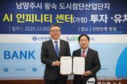 (케이엠뉴스) 남양주시는 5일 서울 중구 신한은행 본점에서 신한금융그룹과 왕숙 도시첨단산업단지 내 ‘AI 인피니티 센터’ 투자유치를 위한 업무협약을 체결했다. 이번 협약은 신한금융그룹의 금융 AI 선도기술 확보를 위한 핵심 사업으로, 시는 약 8,500억 원 규모의 민간 투자를 통해 왕숙 도시첨단산업단지의 경쟁력을 강화하고 첨단 금융·AI 산업 기반을 조성하는 데 속도를 낼 계획이다. 신한금융그룹 ‘AI 인피니티 센터’는 왕숙 도시첨단산업단지 내 약 9만 7,000㎡ 부지에 조성되며, △AI 데이터센터 △업무시설 △R&D 연구시설 등으로 구성된다. 센터가 완공되면 신한금융그룹 임직원과 협력사 직원 등 500여 명이 상주하게 돼, 실제 금융권의 AI 기술 개발·운영이 이뤄지는 핵심 업무 거점으로 자리매김할 것으로 기대된다. 이날 협약식에 참석한 주광덕 시장은 “오늘 협약을 통해 남양주시는 다산 정약용의 혁신철학을 미래지향적으로 실현하고, 신한금융그룹은 AI 금융산업의 선도기업으로 거듭날 수 있는 계기가 됐다”며 “남양주를 선택한 신한금융그룹에 놀랄만한 특별한 혜택과 적극적 행정지원을 제공하겠다”고 말