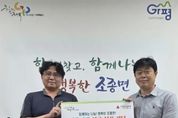 (케이엠뉴스) 가평군 소재 운악건설은 추석 한가위를 맞아 조종면 행정복지센터에 성금 100만원과 홍삼 20박스를 기탁하며 이웃사랑을 실천했다. 강영금 운악건설 대표는 “군민들이 수해 이후 처음 맞는 명절을 조금이나마 따뜻하게 보내시길 바라는 마음으로 성금과 성품을 준비했다”며 “작은 정성이지만 어려운 이웃들에게 기쁨을 주는 선물이 됐으면 좋겠다”고 전했다. 이에 임진섭 조종면장은 “지난 수해복구 성금 기부에 이어 이번 명절에도 잊지 않고 나눔을 실천해 주셔서 진심으로 감사드린다”며 “소중한 기부가 꼭 필요한 이웃에게 전달될 수 있도록 세심하게 챙기겠다”고 말했다.