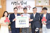 (케이엠뉴스) 양주시가 29일 옥정마을공동체 ‘옥정마루’로부터 성금 120만 원을 기탁받았다고 밝혔다. 이번 성금은 2019년 2월 창립 이후 코로나19 장기화로 공동체 활동을 거의 하지 못한 옥정마루가 지난 8월 10일 해산을 결정하면서, 남은 회비 전액을 지역사회의 어려운 이웃을 위해 쓰기로 뜻을 모아 마련한 것이다. 기탁식에는 옥정마루 배명호 대표, 박현용 이사 및 원민재 총무분과장이 참석했으며, 경기 사회복지공동모금회를 통해 옥정1동과 옥정2동의 취약계층에게 전달될 예정이다. 배명호 대표는 “지역 내 아이들을 위한 교육사업을 추진하고 싶었지만 코로나로 뜻을 이루지 못해 아쉬움이 크다”며, “비록 공동체는 해산하지만 앞으로도 다른 방안을 찾아 지역사회를 위해 계속 노력하고 싶다.”고 말했다. 시 관계자는 “회원들이 함께 모아온 소중한 회비를 어려운 이웃을 위해 기탁해 주셔서 깊이 감사드린다”며, “앞으로도 시는 주민 주도의 공동체 활성화를 위해 지속적으로 노력하겠다.”고 전했다.