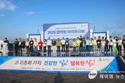 (케이엠뉴스) 평택시의회는 19일, 평택항 엠에스로지스틱 일원(평택시 포승읍 신영리)에서 개최된‘2025 평택항 마라톤대회’에 참석해 전국에서 모인 마라토너들의 열정을 응원했다. 이날 행사에는 강정구 평택시의회의장을 비롯한 시의원이 참석하고 평택시 체육회장, 평택시육상연맹 관계자 등 내외빈과 참가자 약 7,300여명이 함께했다. 이번 평택항 마라톤대회는 스트레칭으로 몸을 푼 뒤 하프코스(21.0975km)·10km,·5km 3개 부문으로 나눠 출발했다. 하프코스는 평택당진항 자유무역지역을 지나 평택항 서부두 내항방면을 거쳐 퓨리나 평택공장까지, 10km구간은 서부두 해안도로까지, 5km구간은 평택항 서부두 내항방면까지 각각 반환점으로 삼는 코스다. 강정구 의장은 “마라토너가 달리는 이유는 끝이 아닌 여정 그 자체에 있기에 중요한 것은 완주가 아니라 그 과정 속에서 자신을 발견하는 일”이라며, “평택시의회도 건강한 공동체 속에서 도전의 기쁨을 누릴 수 있도록 생활체육 기반을 튼튼히 다지는 데 최선을 다하겠다”라고 전했다. 한편 올해로 25회를 맞는‘2025 평택항 마라톤대회’는 평택의 대