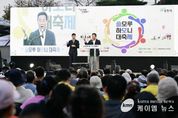 (케이엠뉴스) 포천시 소흘읍은 지난 27일 개최한 ‘2025년 솔모루 하모니 대축제’를 주민들의 뜨거운 참여와 열기 속에서 성황리에 마무리했다. 올해로 3회째를 맞이하는 ‘솔모루 하모니 대축제’는 소흘읍민, 외국인 주민, 북한이탈주민 등 다양한 주민 구성원과 청소년부터 어르신까지 세대 간 조화와 화합의 정신을 이어가는 소흘읍 대표 가을 축제로 자리매김했다. 축제는 디스코 장구, 라인댄스, 시니어 패션쇼 등 주민자치 프로그램과 다문화 공연으로 시작했으며, 이어 하모니 가요제와 청소년 댄스·노래 공연 등 다양한 세대가 참여하는 무대가 이어져 세대 간 화합의 장을 마련했다. 오후 6시부터 진행된 기념식에서는 소흘읍의 과거와 현재를 담은 특별 영상을 상영했다. 영상에는 미군이 건립한 소흘면사무소, 송우초등학교의 옛 모습, 낙후됐던 송우리 지역과 아파트 단지, 고속도로 개통 전후의 축석령 지역 등이 인공지능(AI) 기술로 연출됐다. 주민자치회 김에스더 위원의 내레이션으로 읍민들의 노력을 되새기며 감동을 전했다. 이어진 하모니 합창단 공연에는 지역 가수, 다문화 주민, 봉사 단체, 청소년뿐만 아니라 백영현 포
