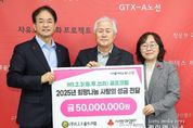 (케이엠뉴스) 고양특례시는 24일, 고양시 덕양구 창릉동에 소재한 1.2.3(원투쓰리) 골프클럽에서 어려운 이웃을 위한 사랑의 성금 5천만 원을 전달했다고 밝혔다. 2021년 고양시 1호 나눔명문기업으로 가입한 1.2.3 골프클럽은 매년 어려운 이웃들이 따뜻한 겨울을 보낼 수 있도록 2000년부터 26년 동안 총 12억 6천 5백 5십 4만 2천 원의 성금을 기탁하면서 나눔문화 확산을 꾸준히 실천하고 있다. ‘나눔명문기업’은 1억 원 이상을 기부하거나 3년 이내 납부를 약정한 기업이 참여하는 고액 기업기부자 모임으로, 선한 영향력으로 우리사회의 나눔문화 확산에 기여하고 있다. 올해 1.2.3 골프클럽은 평소 이웃사랑을 실천하며 지역사회에 나눔문화을 확산하는 데 크게 기여한 공로를 인정받아 경기도로부터 유공 표창도 받았다. 이번에 기탁된 사랑의 성금 5천만 원은 경기 사회복지공동모금회를 통해 골프장 인근 경로당 및 복지지설과 관내 홀몸 어르신 등 추운 겨울을 보내는 소외계층에게 전달될 예정이다. 1.2.3 골프클럽 한제걸 대표이사는 “땅의 지혜를 가진 뱀의 해가 저물고, 땅을 박차고 달리